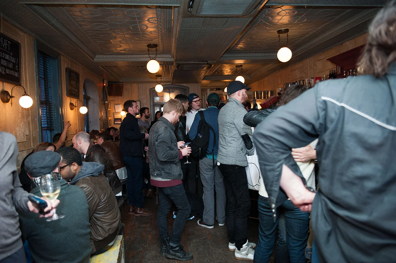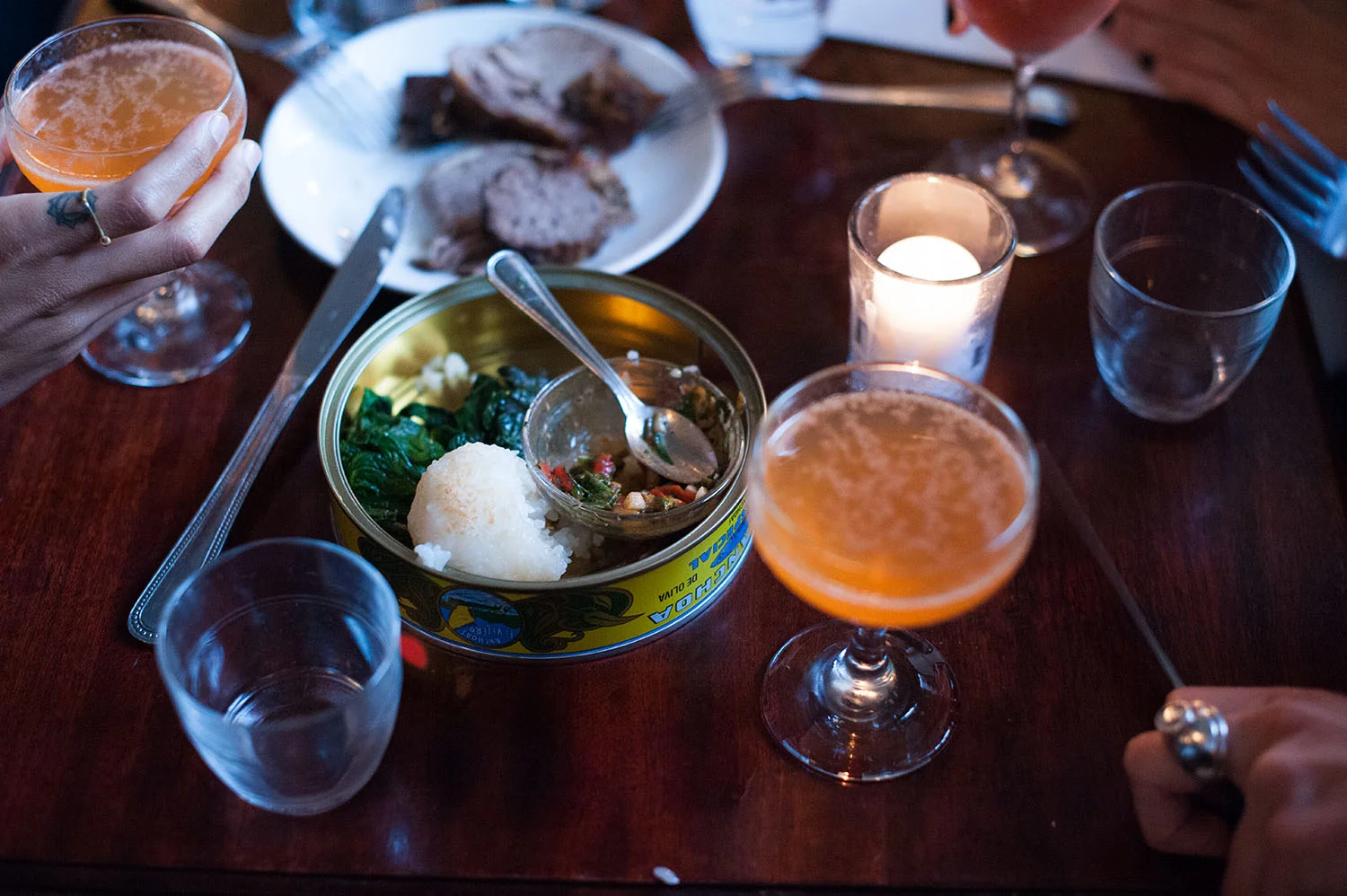 We had a wonderful evening at Achilles Heel in Greenpoint celebrating the release of our 12th issue with our longtime friends at Diner Journal and the Food Book Fair, who were also kicking off their 32nd issue and 5th festival respectively. The spring evening was cool, but not too cool for a crisp rosé, which tasted great with the lamb Chef Lee desRosiers spent all day roasting for the party. He served the side dishes in a fish tin as a nod to our own recipe theme: Canned Fish!