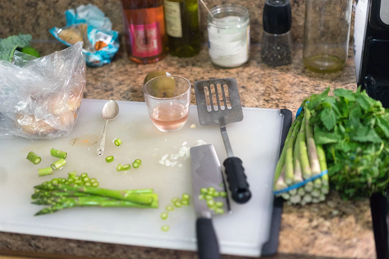 Earlier this summer, we hosted a dinner with Chef Maria Grubb and she served a spicy pea soup garnished with purple asparagus that we all raved about. We recently made it at home and it's fantastic! And so bright green! And the lime zest and spoonful of chili are perfect additions for rounding out the flavor. Our plating may be less glamorous than hers but it turned out well and you should go make it for yourself right now. I served it hot but in this summer heat, you might try it cold too. Should you find yourself in San Juan, look up her restaurant, Gallo Negro, for international Caribbean cuisine and very good cocktails.